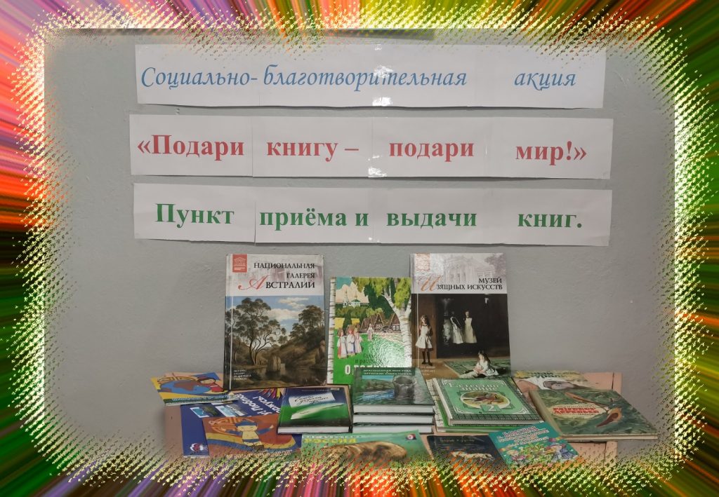 Без рубрики Акция «Подари книгу — подари мир!» 19.11.2021 / В школе проведена социально-благотворительная акция «Подари книгу — подари мир!» Всего детей с ОВЗ — 7 обучающихся. Собранные книги — 25 штук.